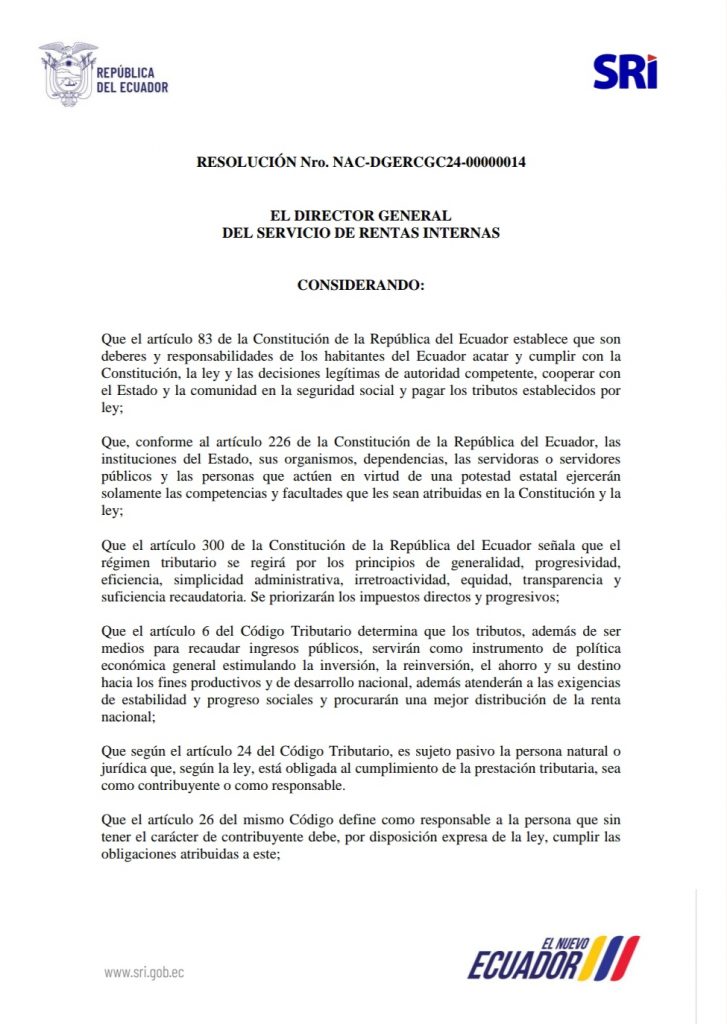 RESOLUCIÓN Nro. NAC-DGERCGC24-00000014