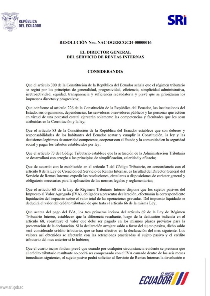 RESOLUCIÓN Nro. NAC-DGERCGC24-00000016