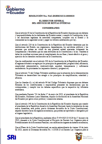RESOLUCIÓN Nro. NAC-DGERCGC23-00000020