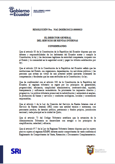 RESOLUCIÓN Nro. NAC-DGERCGC23-00000023