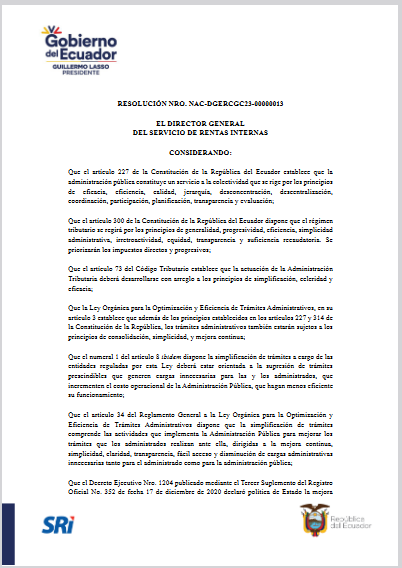 RESOLUCIÓN NRO. NAC-DGERCGC23-00000013