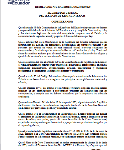 RESOLUCIÓN Nro. NAC-DGERCGC23-00000020
