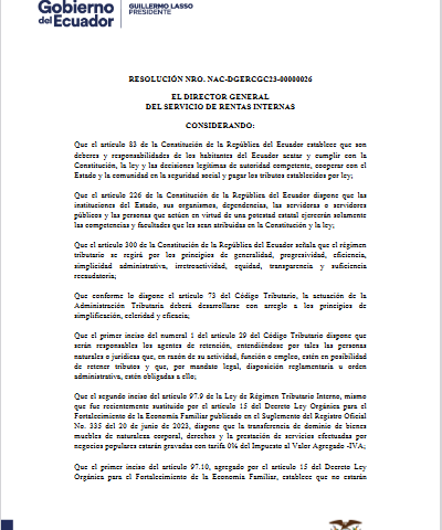 RESOLUCIÓN NRO. NAC-DGERCGC23-00000026