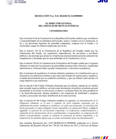 RESOLUCIÓN Nro. NAC-DGERCGC24-00000003