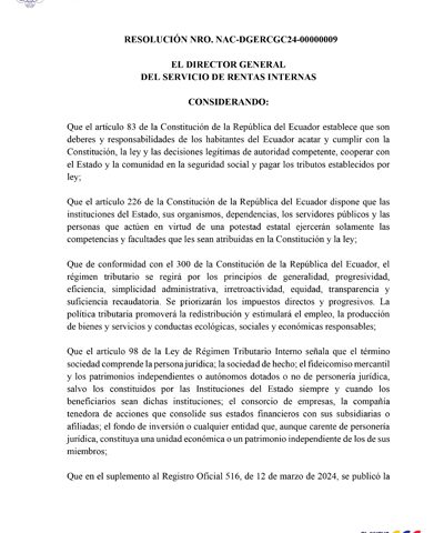 RESOLUCIÓN Nro. NAC-DGERCGC24-00000009