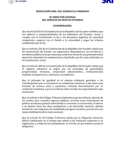 RESOLUCIÓN Nro. NAC-DGERCGC24-00000030