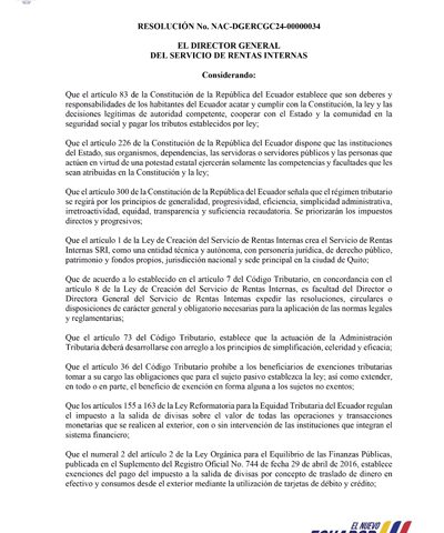 RESOLUCIÓN Nro. NAC-DGERCGC24-00000034